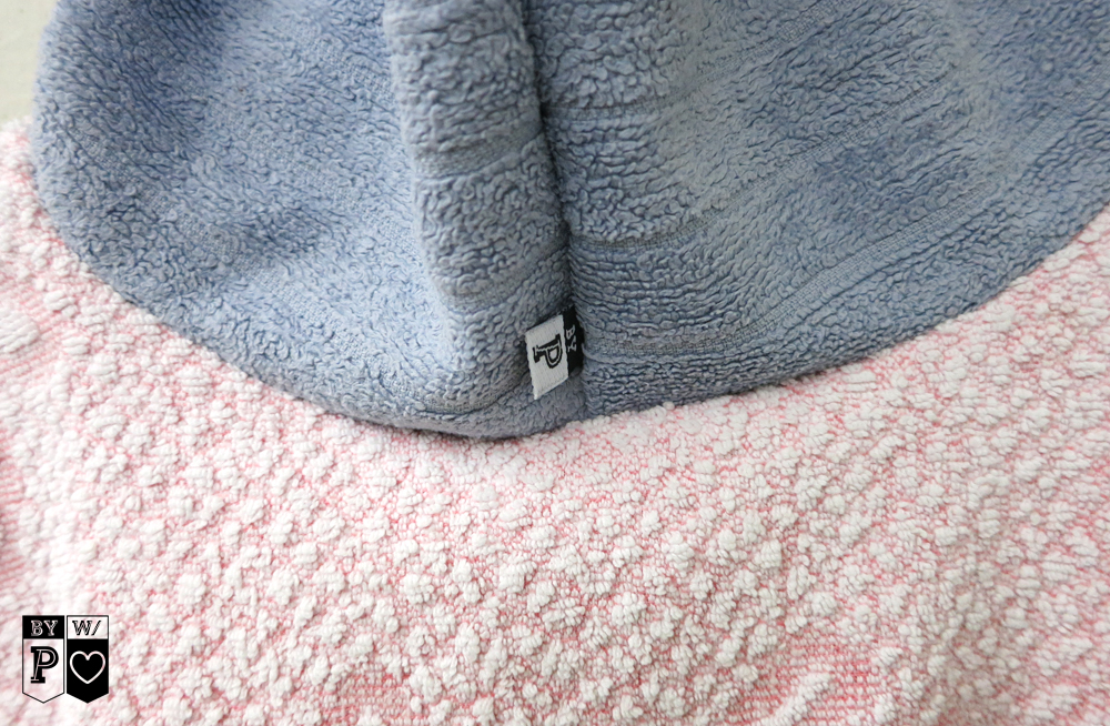 Mehr zu den Ponchos aus alten, ausrangierten Handtüchern findest du im dazugehörigen Blogeintrag. Allerdings konnte ich nur mehr einen der Ponchos mit einem Label versehen.