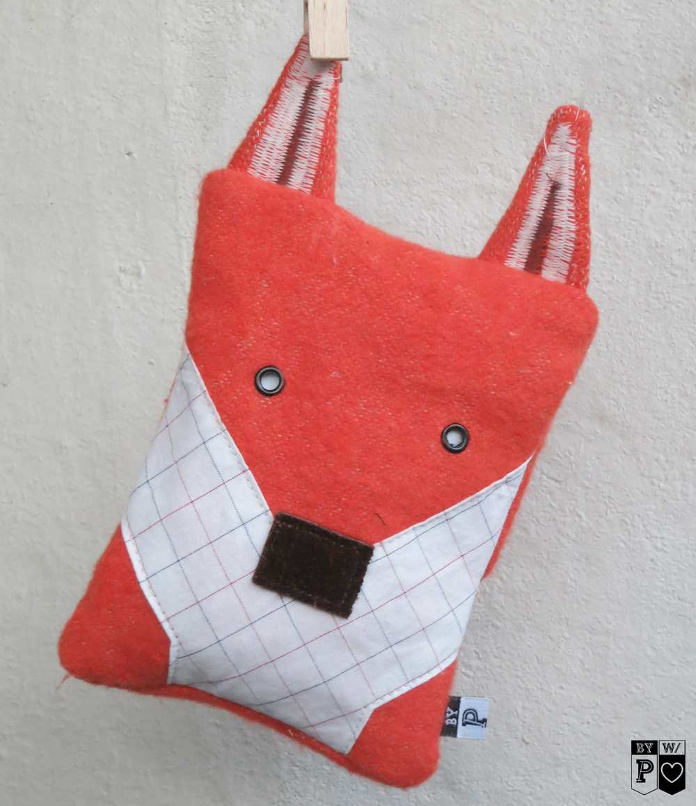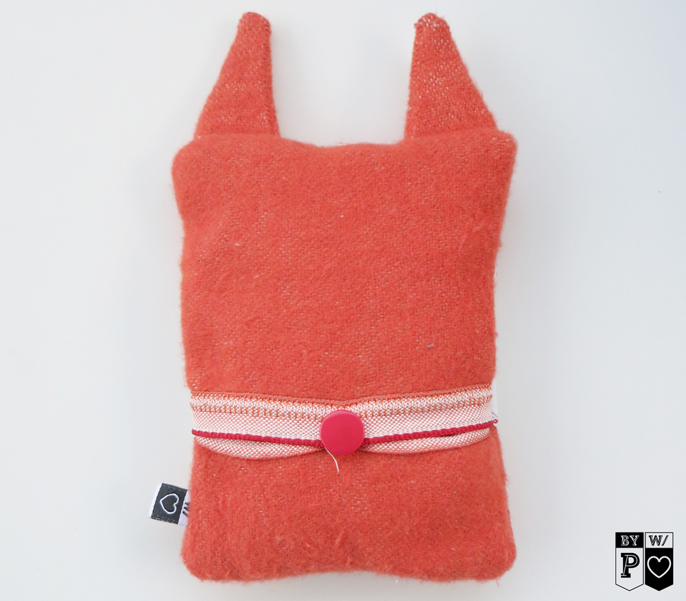 Und so sieht Foxi von hinten aus. Mit KamSnap Druckknopf um das Innenkissen mit den Zirbenspänen herausnehmen zu können, sollte Foxi einmal in die Waschmaschine müssen.