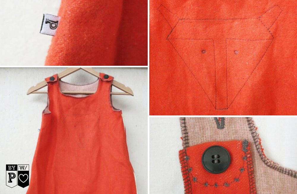 Da die Decke nur einfarbig orange ist, hat Oskars Version noch einen Fuchs aufgenäht bekommen. Einfach nur mit Geradstich und die Augen sind mit dem Ösenstich. Fertig.