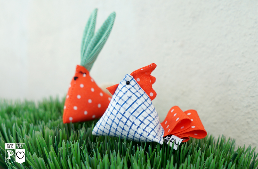 Im Grunde ist es sehr einfach, den Kamm & den Schnabel auf die schöne Stoffseite oben rechts ins Eck platzieren. Stoff von unten nach oben zusammenklappen, die obere und rechte Kante zunähen. Wenden, füllen und nun die Rückenkante mit dem Kamm auf die untere legen, einschlagen, optional Schwanzfedern hineinstecken & zunähen.